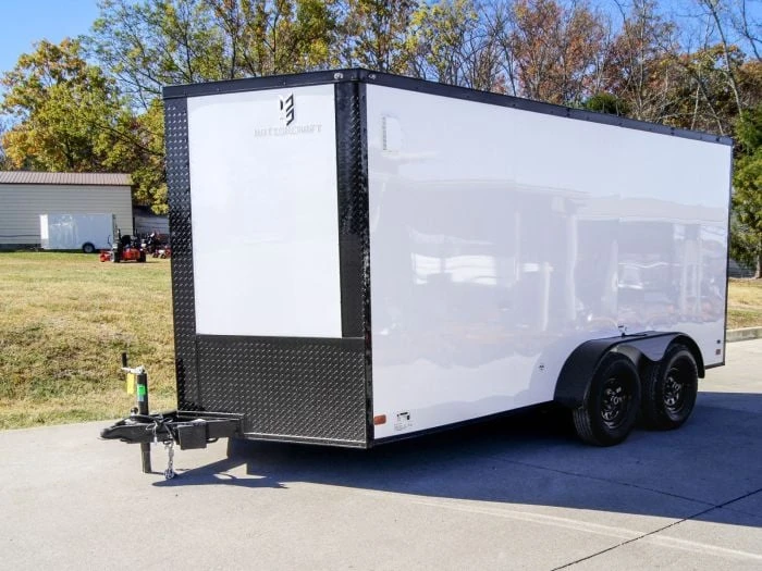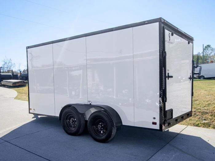 7×14 Tandem Enclosed Trailer White V-Nose Blackout Package (2) 3,500lb Axles