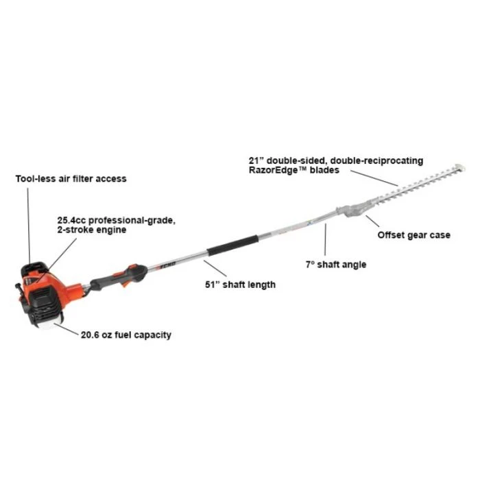 • 51 inch shaft enables operator to trim tall hedges