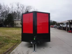 7×14 Enclosed Trailer Red V-Nose Blackout Package 3,500lb Axle Storage