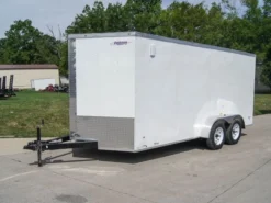7×16 Enclosed Trailer White V-Nose Blackout Package Tandem Axle Storage